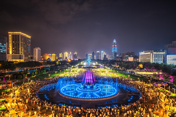 泉城廣場(chǎng)是濟(jì)南市的中心廣場(chǎng)。廣場(chǎng)位于市中心繁華地帶,處于“千佛山――趵突泉――大明湖”著名特色旅游區(qū)的中心,東起南門大街,西至趵突泉南路,南臨濼源大街,北依環(huán)城公園,東西長(zhǎng)780米,南北寬230米,占地總面積約16.96萬(wàn)平方米,新建建筑6.8萬(wàn)平方米,地上花崗巖鋪設(shè)13萬(wàn)平方米,綠化面積5.6萬(wàn)平方米,工程概算總投資為13.5億元。整個(gè)泉城廣場(chǎng)自西往東由趵突泉廣場(chǎng)、南北名士林、泉標(biāo)廣場(chǎng)、頤天園和童樂(lè)園、下沉廣場(chǎng)、歷史文化廣場(chǎng)、濱河廣場(chǎng)、荷花音樂(lè)噴泉、文化長(zhǎng)廊、四季花園、科技文化中心等十余部分組成。